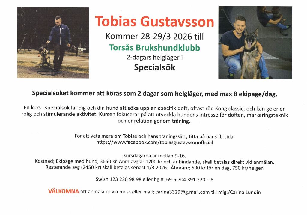 Tobias Gustavsson i specialsök, 28+29/3, helgläger 2-dagars.