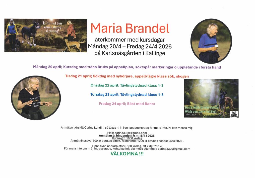 OM ni har några önskemål om instruktörer av olika genre, så kontakta mig via carina3329@gmail.com