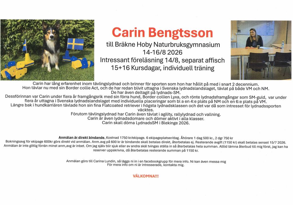 15/8 Kursdag lydnad individuellt, max 6 ekipage