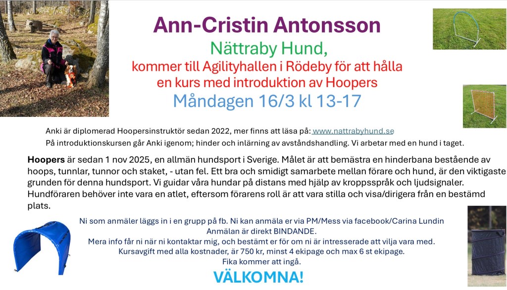 16/3 i Rödeby Agilityhall 13-17
