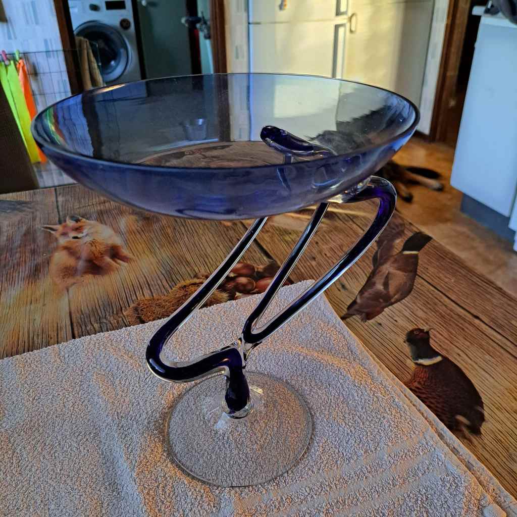 En dekorativ blå glasskål.